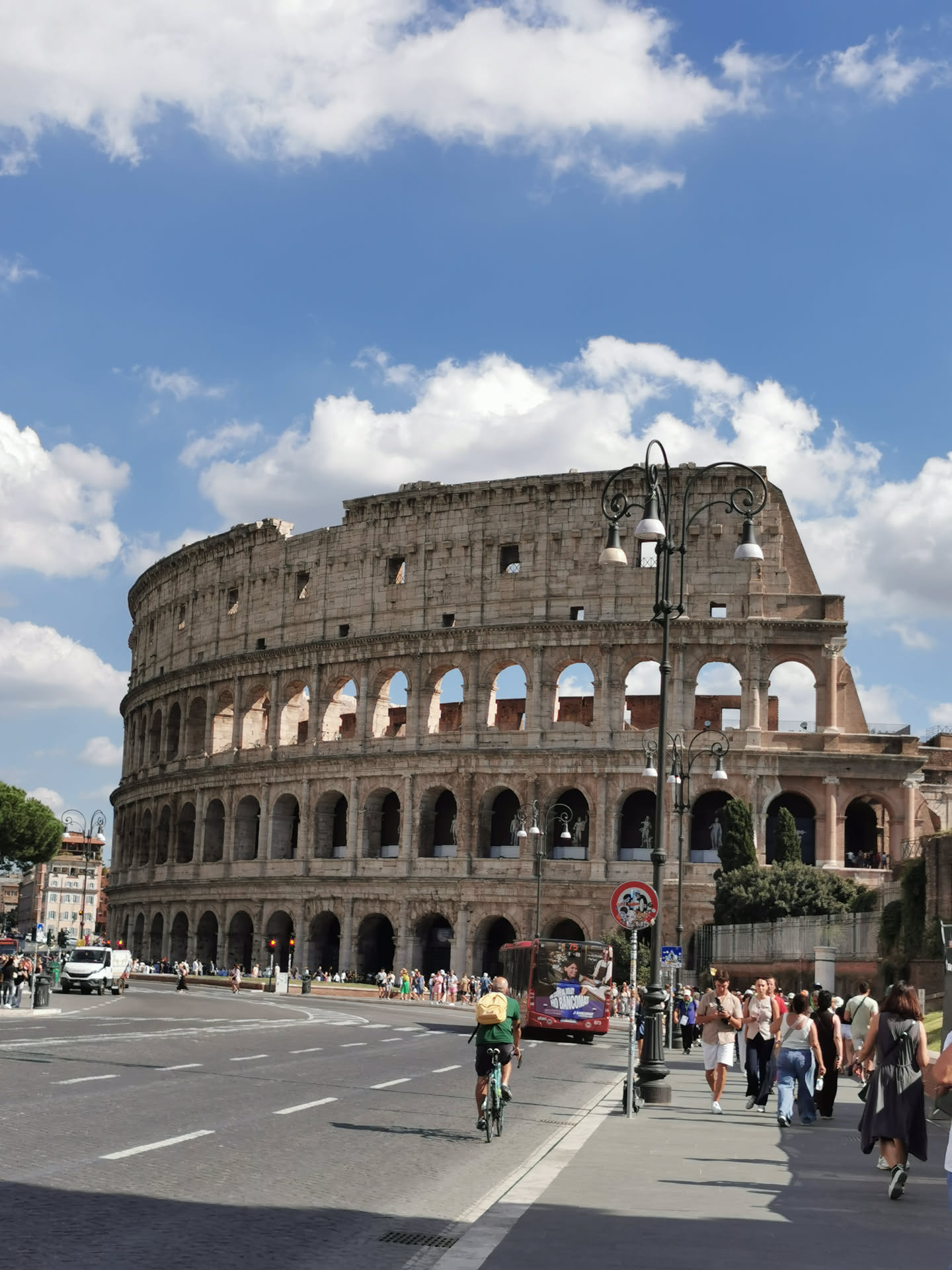 街道两旁,古老的建筑鳞次栉比,斑驳的墙壁上刻满了岁月的痕迹,街头艺人弹奏着悠扬的乐曲,行人悠闲地走着,偶尔驻足交谈,一切都显得那么惬意与自在。路边的咖啡馆里,当地人坐在露天座位上,点一杯咖啡,享受着午后的时光,这份松弛感深深感染了我。 傍晚时分,我来到了罗马斗兽场附近。