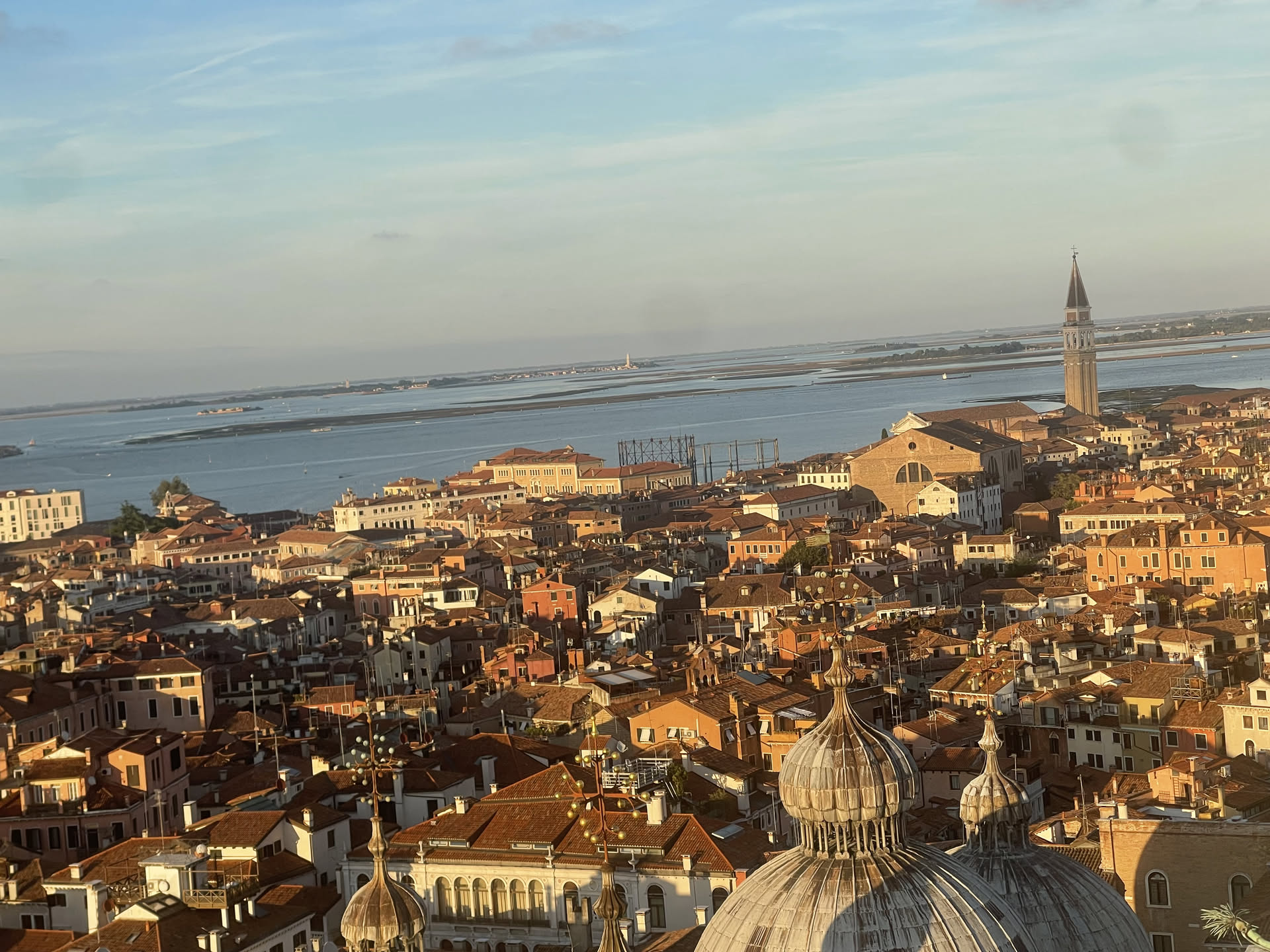日暮时分,登顶圣马可钟楼,凭栏远眺,看夕阳为威尼斯镀上一层暖金,见证落日熔金与城市灯火渐次交融的绝美景致,沉醉于水城独特的日夜风情。
