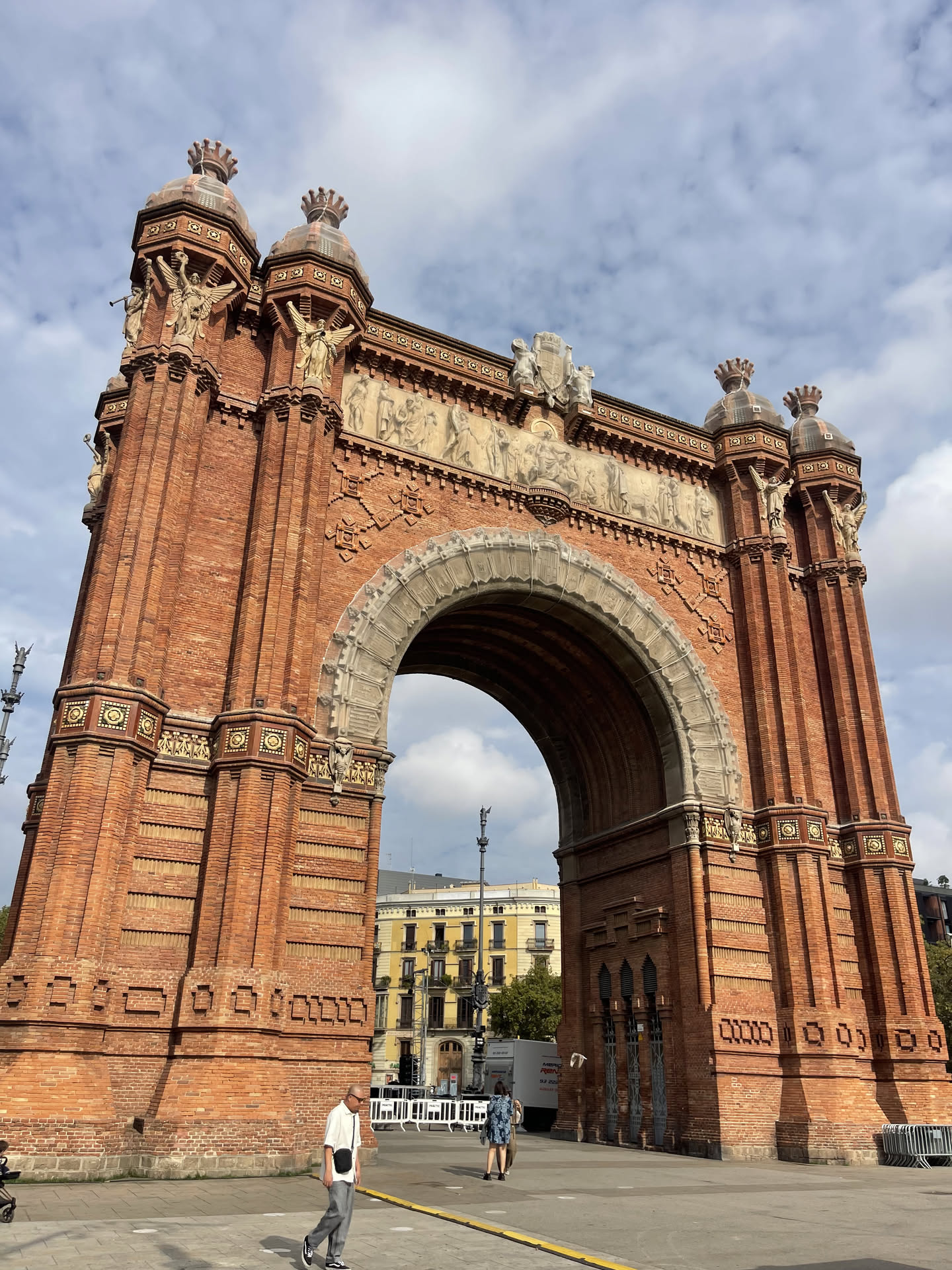 10月4日,巴塞罗那的收官之旅喜忧参半,惬意时光被意外插曲打破,最终带着些许遗憾启程。清晨退房后,将行李寄存在酒店,先赴巴塞罗那凯旋门,欣赏新艺术运动风格的精美拱门雕刻,感受建筑的独特韵味。